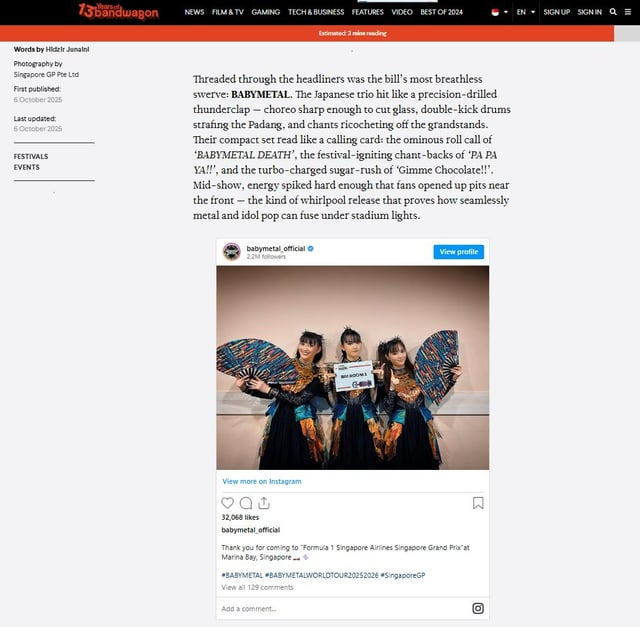 【海外】BABYMETALの現地F1シンガポールGP週末フェスティバルレポート