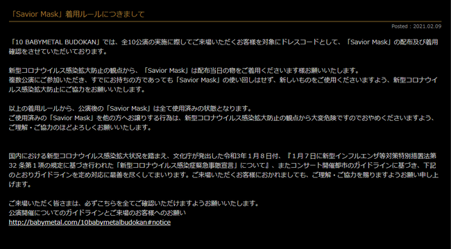 『10 BABYMETAL BUDOKAN』DOOMSDAY - Ⅲ~Ⅵ 「Savior Mask」着用ルール