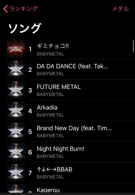 「Apple Music国内メタルチャート」BABYMETALが全てを制覇