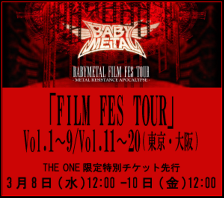 < BABYMETAL FILM FES TOUR > THE ONE限定特別チケット先行スタート