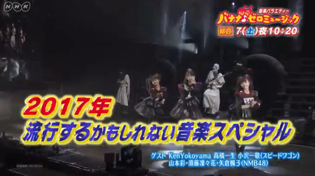 1/7(土)22;20~ バナナ♪ゼロミュージック「2017流行するかもしれない音楽SP」にBABYMETAL!