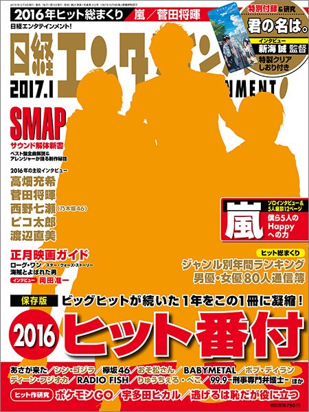 12/2発売『日経エンタテインメント! 1月号』2016年ヒット番付に『BABYMETAL』