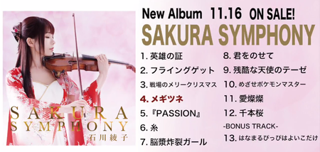 11/16リリース ヴァイオリニスト石川綾子さん「SAKURA SYMPHONY」 BABYMETAL『メギツネ』を試聴公開