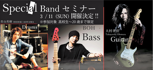 3/11(日) 日本芸術専門学校;青山英樹 BOH 大村孝佳スペシャルバンドセミナー開催!