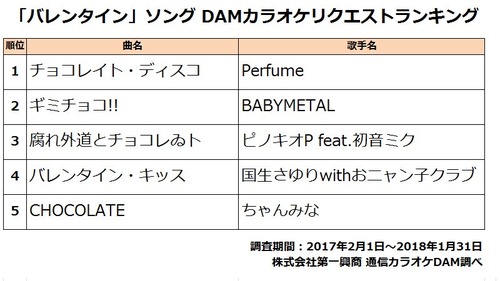 バレンタインに歌いたいDAMカラオケリクエストランキングTOP10、2位BABYMETAL「ギミチョコ!!」