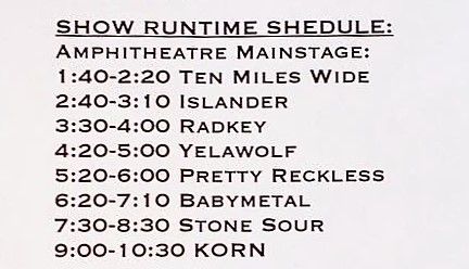 マウンテンビュー:タイムテーブル、BABYMETALは 11;05登場予定