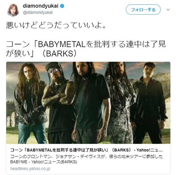 BABYMETAL絶賛記事を見て・・・ダイヤモンドユカイ「悪いけどどうだっていいよ。」