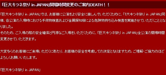 BABYMETA「巨大キツネ祭りの開場時間変更のご案内DEATH!!