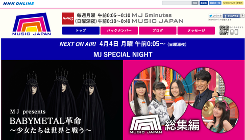NHK総合 4/4放送『MJ Presents BABYMETAL革命 〜少女たちは世界と戦う〜 』HPが更新!