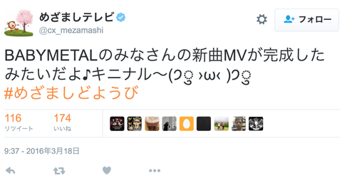 BABYMETALまとめもりー 全1979件取得 42/66 前の30件 次の30件 2016年3月21日6358 まとめ BABYMETALまとめもりー 天才的な歌唱力!難曲、悪夢の輪舞曲を歌いこなすSU-METALの凄さとは 0 0 0 2016年3月21日6348 まとめ BABYMETALまとめもりー BABYMETAL単独ウェンブリー公演前にリハを兼ねたライブってやらないのかな? 0 0 0 2016年3月21日6344 まとめ BABYMETALまとめもりー ハロヲタ「BABYMETALの新曲『KARATE』MVが2日で再生数100万回突破!祝おう!」 0 0 0 2016年3月20日6337 まとめ BABYMETALまとめもりー 【祝】BABYMETAL『KARATE』YouTube総再生数が遂に100万回を突破!勢いが止まらない! 0 0 0 2016年3月20日6328 まとめ BABYMETALまとめもりー 中国版ニコニコ動画のBABYMETAL「KARATE」のコメント弾幕がカオス過ぎるwwwww 0 0 0 2016年3月20日6326 まとめ BABYMETALまとめもりー BABYMETAL「KARATE」MV新規だけど最高!「生で聞いたら泣きながらヘドバンする」 0 0 0 2016年3月20日6322 まとめ BABYMETALまとめもりー BABYMETAL『KARATE』YouTube総再生数が80万回を突破!本日中には100万行くか? 0 0 0 2016年3月20日6315 まとめ BABYMETALまとめもりー BABYMETALの2ndアルバムはももクロの2ndアルバム初動(17万枚)を超えるのか!? 0 0 0 2016年3月20日6308 まとめ BABYMETALまとめもりー BABYMETAL新アルバムで唯一流出されていない曲『シンコペーション』ってどんな曲? 0 0 0 2016年3月19日6303 まとめ BABYMETALまとめもりー BABYMETAL『KARATE』YouTubeの再生数が65万回を突破!勢いが衰えない! 0 0 0 2016年3月19日6290 まとめ BABYMETALまとめもりー BABYMETALの3人が「KARATE」MV撮影について語るというファンのネタレスが面白い 0 0 0 2016年3月19日6277 まとめ BABYMETALまとめもりー 【動画】フジ『みんなのニュース』でBABYMETAL KARATE&ベビメタレコードについて放送! 0 0 0 2016年3月19日6275 まとめ BABYMETALまとめもりー 【動画】めざましテレビでBABYMETAL『KARATE』MVについて放送!ベビメタ 空手を世界へ 0 0 0 2016年3月19日6262 まとめ BABYMETALまとめもりー ハロヲタ「BABYMETALの新曲『空手』が普通にカッコ良いMVなんやが」 0 0 0 2016年3月19日6249 まとめ BABYMETALまとめもりー 『Music Choice』よりBABYMETALの動画が公開!SU-METALが英語で喋る10秒をどうぞ 0 0 0 2016年3月18日6245 まとめ BABYMETALまとめもりー 2016年1月時点でのBABYMETAL新曲予想が面白い「シングルカットするならどの曲?」 0 0 0 2016年3月18日6232 まとめ BABYMETALまとめもりー 明日19日(土)のめざましテレビにBABYMETAL!「新曲MVが完成したみたいだよ♪キニナル〜」 0 0 0 2016年3月18日6226 まとめ BABYMETALまとめもりー BABYMETAL特集!「M-ON」で3/28(月)16:30〜に『ベビメタ特集』が放送! 0 0 0 2016年3月18日6215 まとめ BABYMETALまとめもりー BABYMETAL『KARATE』MVが公式YouTubeにて解禁!1時間で3万回再生を突破! 0 0 0 2016年3月18日6202 まとめ BABYMETALまとめもりー 【HD動画】BABYMETAL『KARATE』のMVが動画サイトにアップ!KARATEかっけええええええ 0 0 0 2016年3月18日6199 まとめ BABYMETALまとめもりー BABYMETAL THE ONE限定イベント開催決定!舞台は新木場Studio Coast! 0 0 0 2016年3月18日6196 まとめ BABYMETALまとめもりー 【動画】BABYMETAL THE ONE『選ばれし1名の為だけに行われた聖なる儀式の様子』が公開! 0 0 0 2016年3月18日6183 まとめ BABYMETALまとめもりー 日本でも海外でもPerfumeがBABYMETALより売れていてアミューズの世代交代が失敗してる件 0 0 0 2016年3月17日6169 まとめ BABYMETALまとめもりー BABYMETAL『ミュージックマガジン4月号』に2ndアルバムの作詞&作曲編曲情報が記載! 0 0 0 2016年3月17日6161 まとめ BABYMETALまとめもりー 【当落発表】BABYMETALウェンブリー公演LV ZEPP東京当選者多数? 0 0 0 2016年3月17日6158 まとめ BABYMETALまとめもりー BABYMETALがエンタメ冊子『MC(ミューズクリップ)』次号予告に登場!全国で無料配布! 0 0 0 2016年3月17日6151 まとめ BABYMETALまとめもりー 【動画】ファミコン世代にはたまらない!BABYMETALの8bit音源が良いと話題に 0 0 0 2016年3月17日6148 まとめ BABYMETALまとめもりー BABYMETAL掲載『CD&DLでーた4月号』の評価が高い件「近年稀に見る神雑誌」 0 0 0 2016年3月17日6145 まとめ BABYMETALまとめもりー BABYMETALやPerfumeってなんで握手無しで成立してるの?利益少なそうなのに・・・ 0 0 0 2016年3月16日6141 まとめ BABYMETALまとめもりー BABYMETAL表紙『日経エンタテイメント5月号』Amazonで予約開始!4月4日発売!よんよん 0 0 0 ホーム BABYMETALまとめもりー 全1979件 前の30件 次の30件