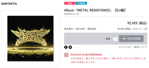 BABYMETAL EU盤「Metal Resistance」がアスマートにて特典付きで取り扱い開始!