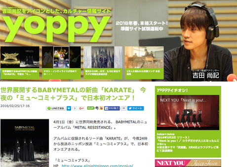 世界展開するBABYMETALの新曲「KARATE」今夜の「ミュ~コミ+プラス」で世界初オンエア!