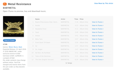 BABYMETAL EU盤『Metal Resistance』各曲の収録時間が判明!全部で54分のアルバムに