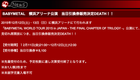 BABYMETALまとめもりー 全1979件取得 56/66 前の30件 次の30件 2015年12月11日4299 まとめ BABYMETALまとめもりー BABYMETAL横浜アリーナライブに向けてオススメの双眼鏡教えて! 0 0 0 2015年12月11日4294 まとめ BABYMETALまとめもりー BABYMETAL横浜アリーナ公演、当日引換券販売決定!受付は本日21:00〜※先着受付 0 0 0 2015年12月11日4287 まとめ BABYMETALまとめもりー BABYMETAL横浜アリーナ公式グッズ紹介第3弾!骨ロンパースを着たモデルが可愛いと話題 0 0 0 2015年12月11日4282 まとめ BABYMETALまとめもりー BABYMETAL、米ビルボード“World Albums”2015年間チャート5位獲得! 0 0 0 2015年12月10日4270 まとめ BABYMETALまとめもりー BABYMETAL横浜アリーナ公演クローク&グッズ販売場所情報が公開! 0 0 0 2015年12月10日4264 まとめ BABYMETALまとめもりー BABYMETAL横浜アリーナ公式グッズ紹介第2弾!新作Tシャツのデザインがカッコいい 0 0 0 2015年12月10日4260 まとめ BABYMETALまとめもりー 今年もMステスーパーライブでBABYMETALの実力に乃木坂ちゃんが打ちのめされるのが辛い 0 0 0 2015年12月9日4250 まとめ BABYMETALまとめもりー BABYMETAL SSAの紙芝居「三種の神器」とは?横浜アリーナ公演が鍵か 0 0 0 2015年12月9日4248 まとめ BABYMETALまとめもりー BABYMETAL英国ウェンブリー公演のチケットが約23万(1850ドル)で落札される 0 0 0 2015年12月8日4224 まとめ BABYMETALまとめもりー BABYMETAL、来年5月アメリカのフェス『CAROLINA REBELLION 2016』に出演決定! 0 0 0 2015年12月8日4221 まとめ BABYMETALまとめもりー BABYMETAL横浜アリーナ公式グッズ紹介!ゆいもあがジャケット着てて可愛すぎるっ! 0 0 0 2015年12月7日4215 まとめ BABYMETALまとめもりー 12/19(土)BABYMETALが葉加瀬太郎さんの番組J-WAVE「ANA WORLD AIR CURRENT」にゲスト出演! 0 0 0 2015年12月7日4211 まとめ BABYMETALまとめもりー BABYMETAL CDJのチケットが来てる模様+12/28日券だけ売れ残ってる理由 0 0 0 2015年12月7日4206 まとめ BABYMETALまとめもりー 【動画】熊の着ぐるみを着たBIZBEAR'sがギミチョコを披露!クオリティが高くてかわいい 0 0 0 2015年12月6日4200 まとめ BABYMETALまとめもりー 【画像】BABYMETAL MOAMETALの秀逸写真まとめ!もあもあ堪らん! 0 0 0 2015年12月6日4193 まとめ BABYMETALまとめもりー BURRN!編集部員がBABYMETALをdisる「ベビメタにこんなに良い曲があるかい?」→批判殺到 0 0 0 2015年12月5日4189 まとめ BABYMETALまとめもりー BABYMETAL「Mステ SUPER LIVE 2015」出演曲予想!ギミチョコ or RoRが大多数か 0 0 0 2015年12月5日4184 まとめ BABYMETALまとめもりー 【悲報】なんJ民「ももクロ、BABYMETALに抜かれる」 0 0 0 2015年12月5日4176 まとめ BABYMETALまとめもりー BABYMETAL「Mステ SUPER LIVE 2015」出演を受けてネット上では歓喜の声 0 0 0 2015年12月4日4172 まとめ BABYMETALまとめもりー BABYMETAL横アリ物販グッズ情報が公開!新作Tシャツは2種類! 0 0 0 2015年12月4日4167 まとめ BABYMETALまとめもりー 【速報】12/25のMステスーパーライブにBABYMETALの出演が決定!ファンの反応まとめ 0 0 0 2015年12月4日4164 まとめ BABYMETALまとめもりー BABYMETAL「Amazonランキング大賞2015」アルバム総合3位、アナログ盤5位、輸入盤8位という快挙! 0 0 0 2015年12月4日4156 まとめ BABYMETALまとめもりー 奥田民生さんがBABYMETALを絶賛!「ベビメタはすっばらしい!ずきゅん!どきゅん!」 0 0 0 2015年12月4日4153 まとめ BABYMETALまとめもりー BABYMETALライブの雰囲気を楽しみたい!双眼鏡じゃなくメガネ型双眼鏡ってアリ? 0 0 0 2015年12月3日4150 まとめ BABYMETALまとめもりー BABYMETALのライブDVD&Blu-rayで好きな順教えてくれ! 0 0 0 2015年12月3日4145 まとめ BABYMETALまとめもりー BABYMETAL衣装や直筆学院日誌などが展示「さくら学院ミュージアム 」本日オープン! 0 0 0 2015年12月3日4141 まとめ BABYMETALまとめもりー 「Yahoo!検索大賞2015」の大賞をデーブ・スペクターさんがBABYMETALと予想! 0 0 0 2015年12月2日4139 まとめ BABYMETALまとめもりー 【動画】BABYMETALギミチョコ、YouTube再生数でついにももクロ「怪盗少女」を抜く 0 0 0 2015年12月2日4132 まとめ BABYMETALまとめもりー 今後BABYMETAL全国ツアーをアリーナ規模にしないとファンが3人を観られなくなる件 0 0 0 2015年12月2日4129 まとめ BABYMETALまとめもりー BABYMETAL横浜アリーナ公演チケット番号報告まとめ!HP先行はクソ席ばかり? 0 0 0 ホーム BABYMETALまとめもりー 全1979件 前の30件 次の30件