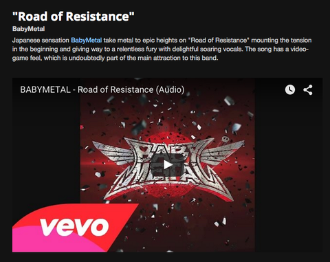 BABYMETAL「Loudwire音楽賞」2015Best Metal Song候補に「Road of Resistance」が選出され投票が開始!