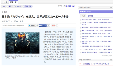 「日本だけでなく海外でも成功しているおすすめアーティスト5選」にBABYMETALが選出!