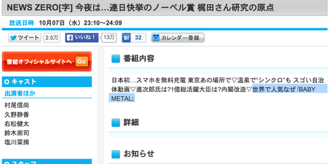 【動画】日テレ「NEWS ZERO」BABYMETAL特集の内容が薄かったと話題に!ファンの感想&キャプチャまとめ