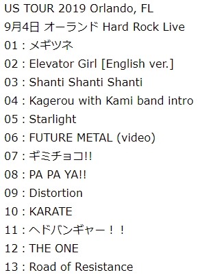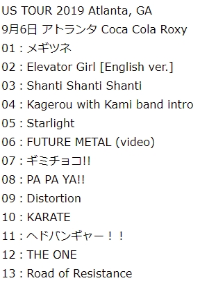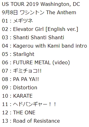 BABYMETALUS TOUR 2019 ワシントンDC セトリ 岡崎百々子