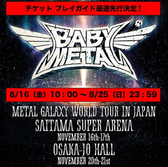 BABYMETAL「 METAL GALAXY ツアーチケット プレイガイド先行&アミュモバ先行」