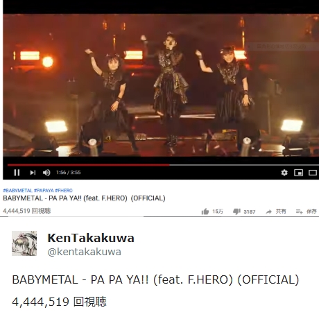 BABYMETAL「新曲パパヤ4,444,444再生超え!!」