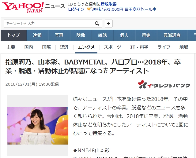 BABYMETAL「2018年、卒業・脱退・活動休止が話題になったアーティストにYUIMETAL」