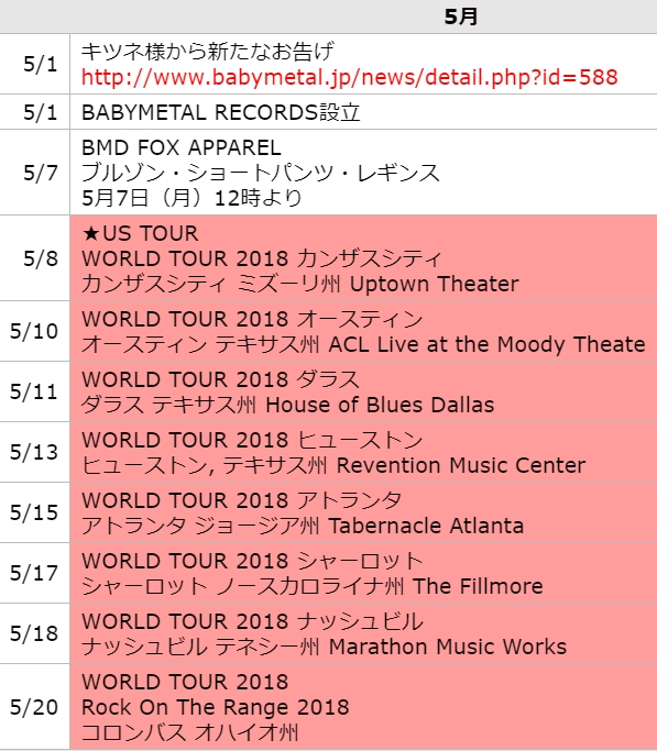 BABYmatoMETAL 全10340件取得 189/345 前の30件 次の30件 2018年5月6日1181937 まとめ BABYmatoMETAL BABYMETAL「10RT以上の人気ベビメタツイート集」 1 0 0 2018年5月5日1181932 まとめ BABYmatoMETAL BABYMETAL「川内優輝選手がカラオケで歌うのはGJ!とKARATE」 0 0 0 2018年5月5日1181929 まとめ BABYmatoMETAL BABYMETAL「ベビメタ 5の画像」 1 0 0 2018年5月5日1181926 まとめ BABYmatoMETAL BABYMETAL「海外フェスRock am Ring・im Parkタイムテーブル発表」 0 0 0 2018年5月5日1181919 まとめ BABYmatoMETAL BABYMETAL「ベビメタファンアート集」 0 0 0 2018年5月5日1181916 まとめ BABYmatoMETAL BABYMETAL「10RT以上の人気ベビメタツイート集」 0 0 0 2018年5月4日1181909 まとめ BABYmatoMETAL BABYMETAL「ベビメタツイート集」 0 0 0 2018年5月4日1181907 まとめ BABYmatoMETAL BABYMETAL「ベビメタ 4の画像」 0 0 0 2018年5月4日1181903 まとめ BABYmatoMETAL BABYMETAL「ベビメタついて語る鈴木愛理」 0 0 0 2018年5月4日1181897 まとめ BABYmatoMETAL BABYMETAL「10RT以上の人気ベビメタツイート集」 0 0 0 2018年5月4日1181895 まとめ BABYmatoMETAL BABYMETAL「SU-METALのパパ チュウゲンさん耳がそっくり」 0 0 0 2018年5月3日1181890 まとめ BABYmatoMETAL BABYMETAL「ベビメタツイート集」 0 0 0 2018年5月3日1181886 まとめ BABYmatoMETAL BABYMETAL「テキサス州オースティン公演完売」 0 0 0 2018年5月3日1181883 まとめ BABYmatoMETAL BABYMETAL「ベビメタ 3の画像」 0 0 0 2018年5月3日1181866 まとめ BABYmatoMETAL BABYMETAL「10RT以上の人気ベビメタツイート集」 0 0 0 2018年5月3日1181863 まとめ BABYmatoMETAL BABYMETAL「WORLD TOUR 2018 ツアーグッズ」 0 0 0 2018年5月2日1181851 まとめ BABYmatoMETAL BABYMETAL「日経MJにベビメタアパレル」 0 0 0 2018年5月2日1181848 まとめ BABYmatoMETAL BABYMETAL「ベビメタ2の画像」 0 0 0 2018年5月2日1181838 まとめ BABYmatoMETAL BABYMETAL「ベビメタツイート集:1」 1 0 0 2018年5月2日1181830 まとめ BABYmatoMETAL BABYMETAL「ベビメタ動画集」 0 1 0 2018年5月2日1181831 まとめ BABYmatoMETAL BABYMETAL 2018年5月のスケジュール 0 0 0 2018年5月2日1181821 まとめ BABYmatoMETAL BABYMETAL「10RT以上の人気ベビメタツイート集」 0 0 0 2018年5月1日1181804 まとめ BABYmatoMETAL BABYMETAL「キツネ様に選ばれし、DARK SIDEの7人の勇者達」 0 0 0 2018年5月1日1181802 まとめ BABYmatoMETAL BABYMETAL「ベビメタ公式サイトTOP画更新」 0 0 0 2018年5月1日1181800 まとめ BABYmatoMETAL BABYMETAL「青山神がベビメタTシャツ」 0 0 0 2018年5月1日1181323 まとめ BABYmatoMETAL BABYMETAL「新レーベル KOBAMETALのコメント」 0 0 0 2018年5月1日1181298 まとめ BABYmatoMETAL BABYMETAL「10RT以上の人気ベビメタツイート集:斎藤さん」 1 0 0 2018年5月1日1181295 まとめ BABYmatoMETAL BABYMETAL「アメリカで新レーベルBABYMETAL RECORDS設立」 0 0 0 2018年4月30日1177692 まとめ BABYmatoMETAL BABYMETAL「ベビメタツイート集」 0 0 0 2018年4月30日1177690 まとめ BABYmatoMETAL BABYMETAL「BMD FOX APPAREL ブルゾンモデルに斎藤さん」 0 0 0 ホーム BABYmatoMETAL 全10340件 前の30件 次の30件