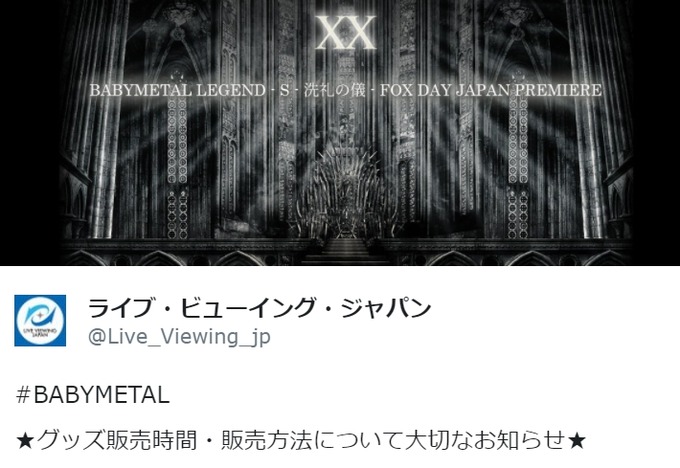 BABYMETAL「ベビメタLVグッズ、一部会場において販売時間・販売方法が変更」