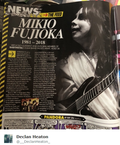 ケラングDeclan Heaton@__DeclanHeaton_❤️ @BABYMETAL_JAPAN @KerrangMagazine @KAMIBAND_FANS #Mikio...
