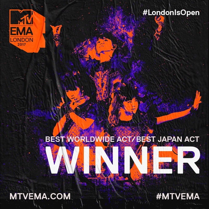 BABYMETAL「欧州最大級の音楽アワードMTV EMA 2017にてベビメタがBEST JAPAN ACT賞のウィナーに決定」