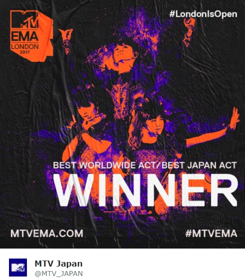 BABYMETAL「ベビメタ公式ツイ 投票ありがとう、BEST JAPAN ACT at 2017 MTV EMA」