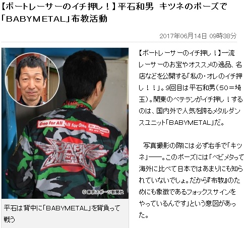 BABYMETAL「ボートレーサーの平石和男 キツネのポーズでベビメタ布教」