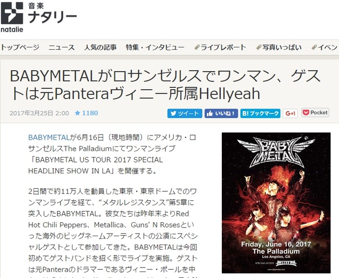 BABYmatoMETAL 全10340件取得 263/345 前の30件 次の30件 2017年3月29日928587 まとめ BABYmatoMETAL BABYMETAL「THEカラオケ★バトルSPでベビメタ紹介される」 0 0 0 2017年3月29日928567 まとめ BABYmatoMETAL BABYMETAL「USショップでタンクトップ・オーナメント・デニムジャケ再販」 0 0 0 2017年3月28日928552 まとめ BABYmatoMETAL BABYMETAL「レッチリUSツアーに神バンドの大神様は不参加?」 0 0 0 2017年3月28日928543 まとめ BABYmatoMETAL BABYMETAL「週プレ:レコード人気復活で最新プレイヤーが大量リリース!」 0 0 0 2017年3月28日928540 まとめ BABYmatoMETAL BABYMETAL「 KORN USツアー 追加公演はフェスでベビメタメインステージ」 0 0 0 2017年3月28日928532 まとめ BABYmatoMETAL BABYMETAL「KORN USツアー 追加公演決定DEATH!!」 0 0 0 2017年3月27日926681 まとめ BABYmatoMETAL BABYMETAL「京王線新宿駅にベビメタポスター」 0 0 0 2017年3月27日926677 まとめ BABYmatoMETAL BABYMETAL「英レコード店限定で特別仕様2ndアルバムLP盤発売」 0 0 0 2017年3月27日926666 まとめ BABYmatoMETAL BABYMETAL「R25:STU48に広島名門スクール生が合格?ファン騒然」 0 0 0 2017年3月27日926659 まとめ BABYmatoMETAL BABYMETAL「LIVE AT TOKYO DOME THE ONE限定版が出荷準備中に」 0 0 0 2017年3月26日926642 まとめ BABYmatoMETAL BABYMETAL「すぅさんのステルス性能は健在」 0 0 0 2017年3月26日926635 まとめ BABYmatoMETAL BABYMETAL「さくら学院と卒業生写真 すぅ由結最愛」 0 0 0 2017年3月26日926634 まとめ BABYmatoMETAL BABYMETAL「フィルムフェスツアー チケット一般発売 初日完売」 0 0 0 2017年3月26日926627 まとめ BABYmatoMETAL BABYMETAL「ヘドバン編集部:LA単独公演、SPゲスト元PANTERA、安定の“想像の斜め上”を行くベビメタ」 0 0 0 2017年3月26日926617 まとめ BABYmatoMETAL BABYMETAL「朝日新聞:さくら学院 中3倉島&黒澤が卒業 卒業生としてベビメタ紹介」 0 0 0 2017年3月26日926611 まとめ BABYmatoMETAL BABYMETAL「ライブ・ネーションL.A.は最愛ちゃん推し?」 0 0 0 2017年3月25日926604 まとめ BABYmatoMETAL BABYMETAL「ベビメタLAワンマン twi反応」 0 0 0 2017年3月25日926603 まとめ BABYmatoMETAL BABYMETAL「東京ドーム公演上映会&フィルムフェスツアー チケットプレリザーブ チケット当落発表」 0 0 0 2017年3月25日926600 まとめ BABYmatoMETAL BABYMETAL「STU48メンバーにも期待Perfume、鞘師里保、中元姉妹ら“広島発”」 0 0 0 2017年3月25日926594 まとめ BABYmatoMETAL BABYMETAL「サマソニ2017 第3弾ラインナップの発表 ベビメタなし」 0 0 0 2017年3月25日926590 まとめ BABYmatoMETAL BABYMETAL「LAワンマンのポスターのSU-METALがコロンビアすぎる」 0 0 0 2017年3月25日926585 まとめ BABYmatoMETAL BABYMETAL「ナタリー:ベビメタがロサンゼルスでワンマン ゲストは元Pantera」 0 0 0 2017年3月25日926579 まとめ BABYmatoMETAL BABYMETAL「LIVE AT TOKYO DOME 購入特典ステッカー公開」 0 0 0 2017年3月25日926568 まとめ BABYmatoMETAL BABYMETAL「6/16ロサンゼルスでワンマンライブ決定」 0 0 0 2017年3月24日926170 まとめ BABYmatoMETAL BABYMETAL「マーベル展 期間限定ストアがオープン ベビメタがらがデザインしたキャプテン・アメリカのシールド」 0 0 0 2017年3月24日921973 まとめ BABYmatoMETAL BABYMETAL「英BBC:デビッド・ボウイ・マドンナ・ベビメタ」 0 0 0 2017年3月23日921960 まとめ BABYmatoMETAL BABYMETAL「UKショップ新Tシャツ twi反応」 0 0 0 2017年3月23日921953 まとめ BABYmatoMETAL BABYMETAL「ゆっぺのインタビューKARATEはメタル最高の悪ふざけ」 0 0 0 2017年3月23日921947 まとめ BABYmatoMETAL BABYMETAL「ベビメタ マイクロラゲッジがメーカーから直売」 0 0 0 2017年3月23日921941 まとめ BABYmatoMETAL BABYMETAL「UKショップで アー写Tシャツが発売」 0 0 0 ホーム BABYmatoMETAL 全10340件 前の30件 次の30件