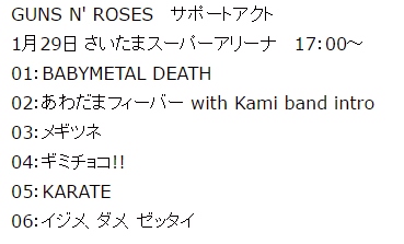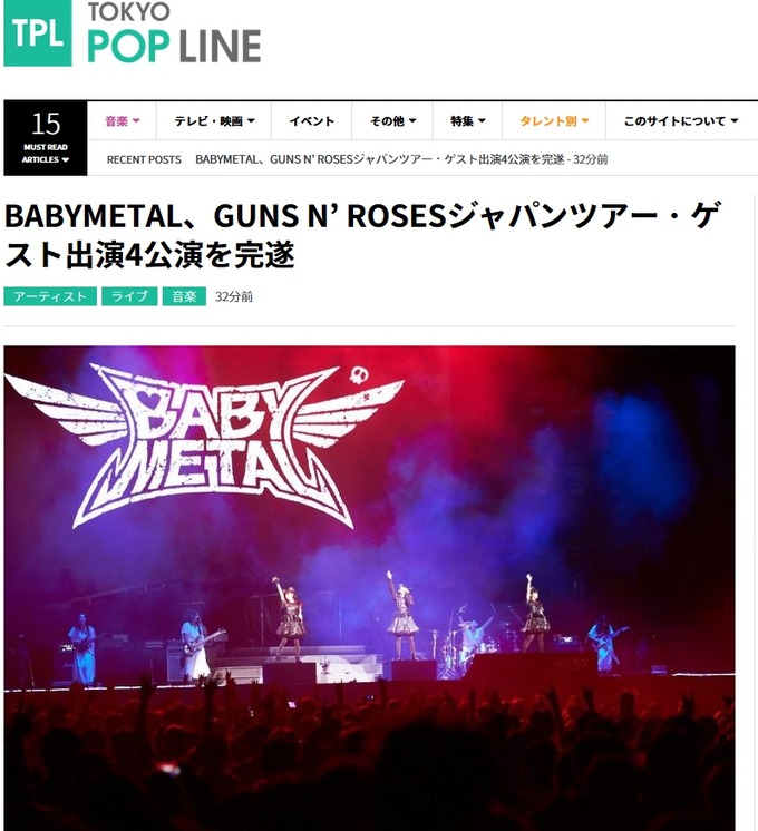 BABYMETAL「GUNS N’ ROSESジャパンツアー・ゲスト出演4公演を完遂」