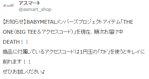 BABYmatoMETAL 全10340件取得 276/345 前の30件 次の30件 2017年1月22日507519 まとめ BABYmatoMETAL BABYMETAL「“ベビメタ”や“ももクロ”まで笑顔で叩くドラマー!?むらたたむがライブ告知動画」 0 0 0 2017年1月22日507153 まとめ BABYmatoMETAL BABYMETAL「ガンズファンの1人が ライブ前「ベビメタファンむかつく」⇒ライブ後「ベビメタめっちゃよかった」」 0 0 0 2017年1月22日506141 まとめ BABYmatoMETAL BABYMETAL「BIG TEE発送 やっぱりデカイ その4」 0 0 0 2017年1月22日504568 まとめ BABYmatoMETAL BABYMETAL「GUNS N' ROSES京セラドーム ベビメタを初めて見た感想 0 0 0 2017年1月21日501042 まとめ BABYmatoMETAL BABYMETAL「G・A・R 手文字写真」 0 0 0 2017年1月21日500969 まとめ BABYmatoMETAL BABYMETAL「SU-METALのポンコツ伝説 京セラドームを東京ドームと叫ぶ?」 0 0 0 2017年1月21日500799 まとめ BABYmatoMETAL BABYMETAL「GUNS N' ROSES京セラドーム セトリ順ファンカム動画」 0 0 0 2017年1月21日500007 まとめ BABYmatoMETAL BABYMETAL「GUNS N' ROSES京セラドームtwi感想 MOAつんつん・ジャンプ禁止・泡だま神ソロ」 0 0 0 2017年1月21日499752 まとめ BABYmatoMETAL BABYMETAL「GUNS N' ROSESサポートアクト 京セラドーム大阪 セトリ」 0 0 0 2017年1月21日499241 まとめ BABYmatoMETAL BABYMETAL「GUNS N' ROSESサポートアクト 京セラドーム大阪 入場開始 ジャンプ禁止」 0 0 0 2017年1月21日498101 まとめ BABYmatoMETAL BABYMETAL「GUNS N' ROSESサポートアクト 京セラドーム大阪 物販開始」 0 0 0 2017年1月21日497734 まとめ BABYmatoMETAL BABYMETAL「ぴあMUSIC COMPLEX(PMC)Vol. 8 1/26発売 ベビメタ出演メタリカのソウル公演のライブレポート」 0 0 0 2017年1月21日492455 まとめ BABYmatoMETAL BABYMETAL「ガンズのサポートアクト 京セラドームは座席がある?」 0 0 0 2017年1月21日492384 まとめ BABYmatoMETAL BABYMETAL「THE ONEアクセスコードのスクラッチについてのメール」 0 0 0 2017年1月20日492157 まとめ BABYmatoMETAL BABYMETAL「もしも・・・ゆいちゃんと最愛ちゃんのLINEが流出したら・・・(ネタ画像)」 0 0 0 2017年1月20日491760 まとめ BABYmatoMETAL BABYMETAL「2017年の最も期待されたツアートップ25の中にレッチリ×ベビメタ」 0 0 0 2017年1月20日491448 まとめ BABYmatoMETAL BABYMETAL「話題のツイート:なぜ会社のフォークリフトがベビメタ仕様に」 0 0 0 2017年1月20日489938 まとめ BABYmatoMETAL BABYMETAL「BIG TEE発送 やっぱりデカイ その3」 0 0 0 2017年1月20日488996 まとめ BABYmatoMETAL BABYMETAL「そこに鳴る やらなさそうな人がやる様式美的なメタルだから面白い」 0 0 0 2017年1月20日488684 まとめ BABYmatoMETAL BABYMETAL「ヘビメタアイドルに学ぶ日本と世界基準」 0 0 0 2017年1月20日486047 まとめ BABYmatoMETAL BABYMETAL「アスマート:BIG TEE順次お届け中DEATH!」 0 0 0 2017年1月19日482214 まとめ BABYmatoMETAL BABYMETAL「BIG TEE発送 やっぱりデカイ その2」 0 0 0 2017年1月19日481324 まとめ BABYmatoMETAL BABYMETAL「BIG TEE発送メールがまだ来ないメイトさん」 0 0 0 2017年1月19日480450 まとめ BABYmatoMETAL BABYMETAL「前田神 ベビメタが強烈!ハナから安全な音楽作って無かった」 0 0 0 2017年1月19日479564 まとめ BABYmatoMETAL BABYMETAL「BIG TEE発送 やっぱりデカイ」 0 0 0 2017年1月19日476213 まとめ BABYmatoMETAL BABYMETAL「空前絶後のォォ!!!!超絶怒涛のパロTシャツゥゥ!!!Tシャツを愛しッ!!Tシャツに愛されたバンドォオオ!」 0 0 0 2017年1月18日473073 まとめ BABYmatoMETAL BABYMETAL「CDショップ大賞ノミネート作品が全て発表 ベビメタの2冠なるか?」 0 0 0 2017年1月18日472180 まとめ BABYmatoMETAL BABYMETAL「BIG TEE発送」 0 0 0 2017年1月18日472080 まとめ BABYmatoMETAL BABYMETAL「ガンズ・アンド・ローゼズのベビメタグッズ公開」 0 0 0 2017年1月18日472023 まとめ BABYmatoMETAL BABYMETAL「ジャズ・ピアニスト西山瞳 THE ONEを紹介」 0 0 0 ホーム BABYmatoMETAL 全10340件 前の30件 次の30件