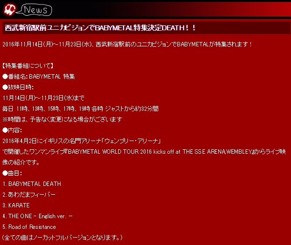 BABYmatoMETAL 全10340件取得 288/345 前の30件 次の30件 2016年11月14日15186 まとめ BABYmatoMETAL BABYMETAL「ゆいちゃんまじゆいちゃんbotが最高すぎる」 0 0 0 2016年11月14日15180 まとめ BABYmatoMETAL BABYMETAL「さくら学院職員室大感謝!卒業生ら ゆいもあ写真UP」 0 0 0 2016年11月14日15176 まとめ BABYmatoMETAL BABYMETAL「西武新宿駅前ユニカビジョン ベビメタ特集スタート」 0 0 0 2016年11月14日15169 まとめ BABYmatoMETAL BABYMETAL「LIVE AT WEMBLEY LV一般発売 残り北海道・大阪・兵庫・広島・福岡」 0 0 0 2016年11月13日15167 まとめ BABYmatoMETAL BABYMETAL「さくら学院祭2016にゆいもあが見に来てた?」 0 0 0 2016年11月13日15165 まとめ BABYmatoMETAL BABYMETAL「モヤさまで♪ヘドバンギャー(動画)」 0 0 0 2016年11月13日15150 まとめ BABYmatoMETAL BABYMETAL「LIVE AT WEMBLEY LV一般発売 関東ほぼ完売」 0 0 0 2016年11月13日15145 まとめ BABYmatoMETAL BABYMWTAL「CDTVでウェンブリーライブ映像紹介」 0 0 0 2016年11月12日15142 まとめ BABYmatoMETAL BABYMETAL「LIVE AT WEMBLEYライブアルバム予約開始」 0 0 0 2016年11月12日15128 まとめ BABYmatoMETAL BABYMETAL「GrindHouse magazine Vol.99に有島博志氏ベビメタ新映像作品掲載」 0 0 0 2016年11月11日15112 まとめ BABYmatoMETAL BABYMETAL「WOWOW東京ドームBLACK NIGHT 1月1日(日)夜8:00放送」 0 0 0 2016年11月11日15087 まとめ BABYmatoMETAL BABYMETAL「LIVE AT WEMBLEY ライブアルバム発売&トレーラー公開」 0 0 0 2016年11月11日15085 まとめ BABYmatoMETAL BABYMETAL「全メタラー必読!メタリカとベビメタが背負う“METAL”を紐解く」 0 0 0 2016年11月11日15073 まとめ BABYmatoMETAL BABYMETAL「西武新宿駅前ユニカビジョンでベビメタ特集」 0 0 0 2016年11月10日15056 まとめ BABYmatoMETAL BABYMETAL「池袋パルコ PGS特設ストアでベビメタグッズ発売」 0 0 0 2016年11月10日15049 まとめ BABYmatoMETAL BABYMETAL「Spotify招待制から一般開放 玉木社長 ベビメタの招待コードをプレゼントに言及」 0 0 0 2016年11月10日15048 まとめ BABYmatoMETAL BABYMETAL「ピエール中野が愛を込めて語る、アイドル論。なぜハマったのか? / ベビメタの功績や」 0 0 0 2016年11月9日15025 まとめ BABYmatoMETAL BABYMETAL「アメリカ大統領選関連ツイート」 0 0 0 2016年11月9日15018 まとめ BABYmatoMETAL BABYMETAL「Pepper-METAL発見!」 0 0 0 2016年11月8日15008 まとめ BABYmatoMETAL BABYMETAL「一見なんだと思うベビメタが世界のファンを惹きつける理由」 0 0 0 2016年11月8日15003 まとめ BABYmatoMETAL BABYMETAL「西山瞳によるヘヴィメタル・カヴァー、NHORHM第2弾 ジャケ写公開」 0 0 0 2016年11月8日15000 まとめ BABYmatoMETAL BABYMETAL「MOAMETALから武藤彩未へのプレゼント」 0 0 0 2016年11月7日14982 まとめ BABYmatoMETAL BABYMETAL「YOUは何しに日本へ? キャプ&twi実況」 0 0 0 2016年11月7日14979 まとめ BABYmatoMETAL BABYMETAL「YOUは何しにラテ欄 世界のYOUが集結 美少女アイドル・・・デス」 0 0 0 2016年11月6日14971 まとめ BABYmatoMETAL BABYMETAL「BOH神 超多忙?2月に何かある?」 0 0 0 2016年11月6日14959 まとめ BABYmatoMETAL BABYMETAL「恩師森センが車の中でさくら学院やベビメタを聴いている」 0 0 0 2016年11月6日14950 まとめ BABYmatoMETAL BABYMETAL「iOS 10顔認識システムでも見破れないSU-METALと中元すず香」 0 0 0 2016年11月5日14944 まとめ BABYmatoMETAL BABYMETAL「ベビメタミニアローのソフトケース写真更新」 0 0 0 2016年11月5日14939 まとめ BABYmatoMETAL BABYMETAL「FREDMETALのB!インタビュー小神さまがドーム初日でクビになったかと心配した」 0 0 0 2016年11月5日14936 まとめ BABYmatoMETAL BABYMETAL「ベビメタとYMOをつなぐピーター・バラカンの存在 」 0 0 0 ホーム BABYmatoMETAL 全10340件 前の30件 次の30件