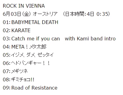 BABYMETAL「ROCK IN VIENNA オーストリアフェスセトリ順ファンカム動画」