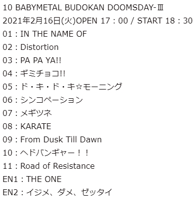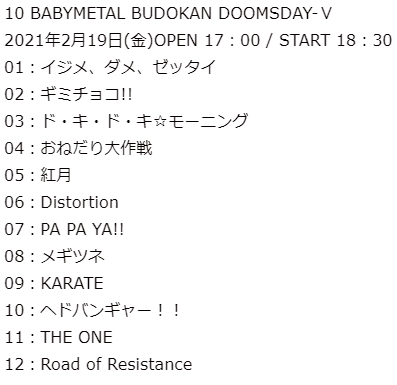 BABYmatoMETAL 全10340件取得 47/345 前の30件 次の30件 2021年2月20日1220635 まとめ BABYmatoMETAL BABYMETAL「10 BUDOKAN DOOMSDAY-Ⅵ セトリ」 0 0 0 2021年2月20日1220627 まとめ BABYmatoMETAL BABYMETAL「ベビメタツイート集」 0 0 0 2021年2月20日1220619 まとめ BABYmatoMETAL BABYMETAL「10RT以上の人気ベビメタツイート集」 0 0 0 2021年2月19日1220612 まとめ BABYmatoMETAL BABYMETAL「BUDOKAN DOOMSDAY-Ⅴ レポ&感想ツイート集」 0 1 0 2021年2月19日1220609 まとめ BABYmatoMETAL BABYMETAL「10 BUDOKAN DOOMSDAY-Ⅴ セトリ おねだり&紅月 0 0 0 2021年2月19日1220600 まとめ BABYmatoMETAL BABYMETAL「10 BUDOKAN DOOMSDAY-Ⅴ 開演前」 0 0 0 2021年2月19日1220596 まとめ BABYmatoMETAL BABYMETAL「ベビメタツイート集」 0 0 0 2021年2月19日1220591 まとめ BABYmatoMETAL BABYMETAL「10RT以上の人気ベビメタツイート集」 0 1 0 2021年2月18日1220585 まとめ BABYmatoMETAL BABYMETAL「ベビメタツイート集」 0 0 0 2021年2月18日1220578 まとめ BABYmatoMETAL BABYMETAL「ベビメタツイート集」 0 0 0 2021年2月18日1220573 まとめ BABYmatoMETAL BABYMETAL「10RT以上の人気ベビメタツイート集」 0 0 0 2021年2月17日1220567 まとめ BABYmatoMETAL BABYMETAL「BUDOKAN DOOMSDAY-Ⅳ レポ&感想ツイート集」 0 1 0 2021年2月17日1220560 まとめ BABYmatoMETAL BABYMETAL「10 BUDOKAN DOOMSDAY-Ⅳ セトリ」 0 0 0 2021年2月17日1220553 まとめ BABYmatoMETAL BABYMETAL「10 BUDOKAN DOOMSDAY-Ⅳ」 0 0 0 2021年2月17日1220550 まとめ BABYmatoMETAL BABYMETAL「鞘師 ベビメタ武道館ライブ見に行った!?」 0 0 0 2021年2月17日1220544 まとめ BABYmatoMETAL BABYMETAL「10RT以上の人気ベビメタツイート集」 0 1 0 2021年2月16日1220539 まとめ BABYmatoMETAL BABYMETAL「BUDOKAN DOOMSDAY-Ⅲ レポ&感想ツイート集」 0 0 1 2021年2月16日1220533 まとめ BABYmatoMETAL BABYMETAL「BUDOKAN DOOMSDAY-Ⅲ セトリ」 0 0 0 2021年2月16日1220525 まとめ BABYmatoMETAL BABYMETAL「10 BUDOKAN DOOMSDAY-Ⅲ 会場前」 0 0 0 2021年2月16日1220521 まとめ BABYmatoMETAL BABYMETAL「10 BUDOKAN DOOMSDAY-Ⅲ 早朝」 0 0 0 2021年2月16日1220517 まとめ BABYmatoMETAL BABYMETAL「10RT以上の人気ベビメタツイート集」 0 0 0 2021年2月15日1220510 まとめ BABYmatoMETAL BABYMETAL 2021年2月のスケジュール 0 0 0 2021年2月15日1220507 まとめ BABYmatoMETAL BABYMETAL「ベビメタツイート集」 0 0 0 2021年2月15日1220503 まとめ BABYmatoMETAL BABYMETAL「ギミチョコ」 0 0 0 2021年2月15日1220499 まとめ BABYmatoMETAL BABYMETAL「10RT以上の人気ベビメタツイート集」 0 0 0 2021年2月14日1220494 まとめ BABYmatoMETAL BABYMETAL「10 BUDOKAN ディレイビューイングツイート集」 0 0 0 2021年2月14日1220490 まとめ BABYmatoMETAL BABYMETAL「ベビメタツイート集」 0 0 0 2021年2月14日1220479 まとめ BABYmatoMETAL BABYMETAL「地震の影響でTOHOシネマズ 仙台が営業一時中止」 0 0 0 2021年2月14日1220477 まとめ BABYmatoMETAL BABYMETAL「10RT以上の人気ベビメタツイート集」 0 0 0 2021年2月13日1220473 まとめ BABYmatoMETAL BABYMETAL「ウイニング競馬のエンディングにギミチョコ」 0 1 0 ホーム BABYmatoMETAL 全10340件 前の30件 次の30件