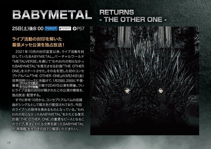 BABYMETAL「新アルバム THE OTHER ONE オリコンデイリー1位」